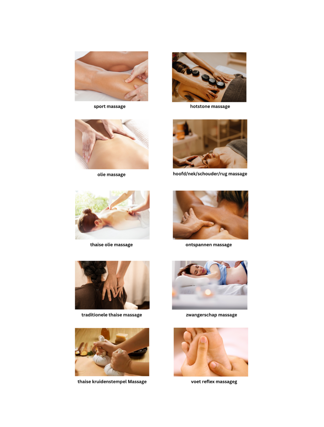 Traditionele Thaise massage is een van ‘s werelds oudste geneesmethoden. Het lichaam van de gemasseerde wordt tijdens een massage in diverse yoga-posities gebracht. Bij deze vorm van massage wordt geen olie gebruikt. De spieren worden d.m.v. knieën, ellebogen en soms zelfs het volledige gewicht van de masseuse gekneed om zo eventuele blokkades en spanning los te maken. Beginnend bij de voeten, en uiteindelijk bij het hoofd, zal het lichaam worden bewogen, losgemaakt en uitgerekt.Traditionele Thaise massage voorkomt en verhelpt zowel lichamelijke als psychische klachten en stimuleert de bloedsomloop en het lymfesysteem waardoor men weer energie krijgt. Chronische vermoeidheid, rug- en nekklachten, hoofdpijn, stijve spieren en gewrichten en een slechte doorbloeding kunnen door Traditionele Thaise massage worden verholpen.